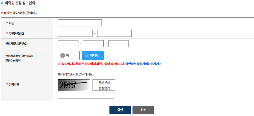 3. 비회원 로그인을 선택 하고 간편 인증을 진행합니다