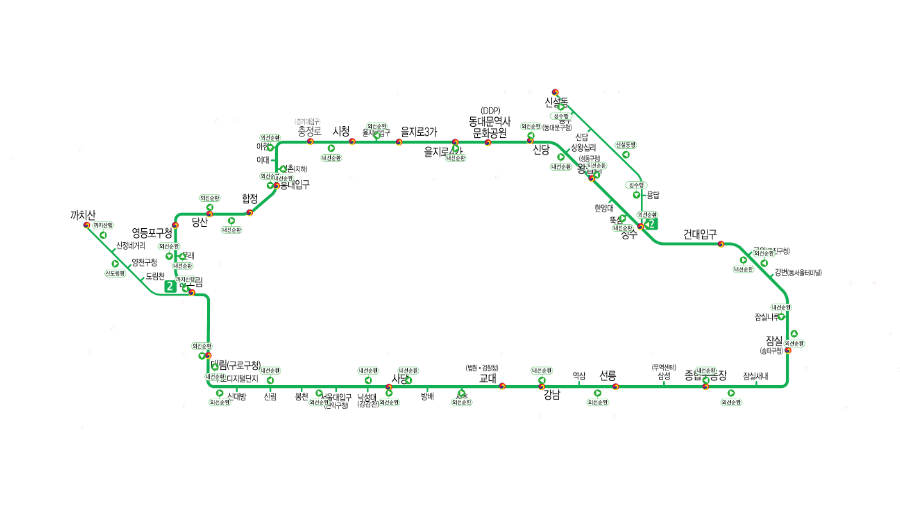 서울 지하철 2호선은 서울 중심을 순환하는 서울의 핵심 노선입니다. 2호선 지하철 역들은 아래 2호선 노선도 크게 보기를 통해 확대해서 볼 수 있습니다.