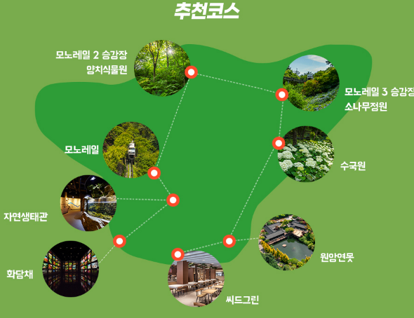 화담숲은 모노레일이 설치되어 있어 20분 만에 화담숲 전체를 둘러볼 수 있습니다. 날씨가 덥거나 추울 때 또는 편하게 숲을 즐기고 싶을 때 모노레일을 이용하면 편리합니다.