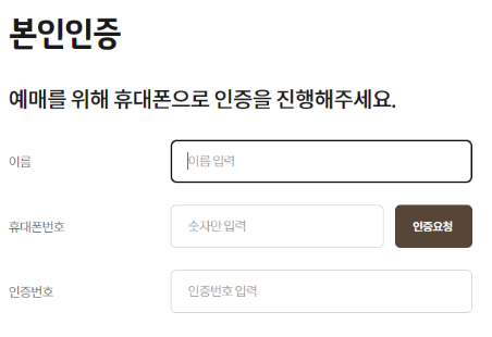 2. 예약을 누르고 이름 및 휴대폰 번호를 적고 인증을 누릅니다