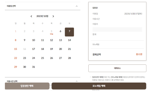 7. 입장권 예매하기를 선택합니다